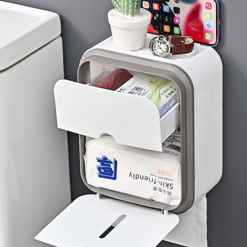 Wall Mounted Organizer Waterproof Tissue Holder for Bathroom-Gray